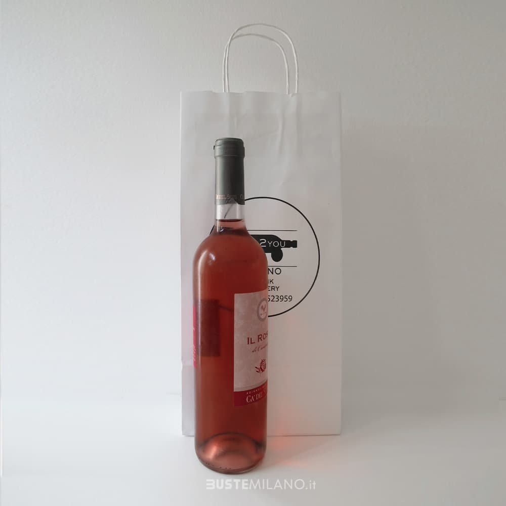 Pratico ed elegante, il nostro Shopper in carta kraft bianca è ideale per trasportare fino a due bottiglie. Perfetto per enoteche, negozi alimentari e ristoranti, unisce resistenza e stile in un formato compatto.